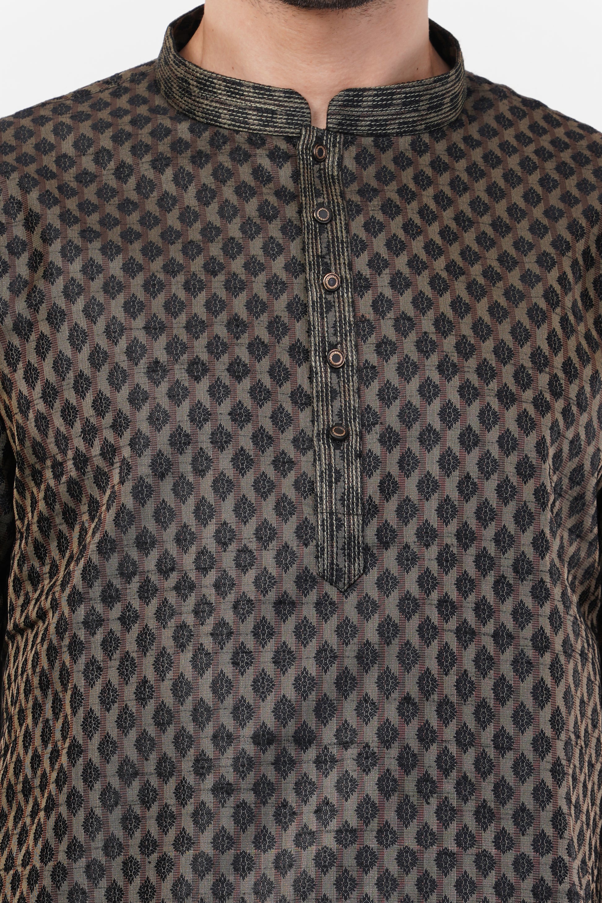 Black Poly Jaquard Subtle Embroidered Kurta Set