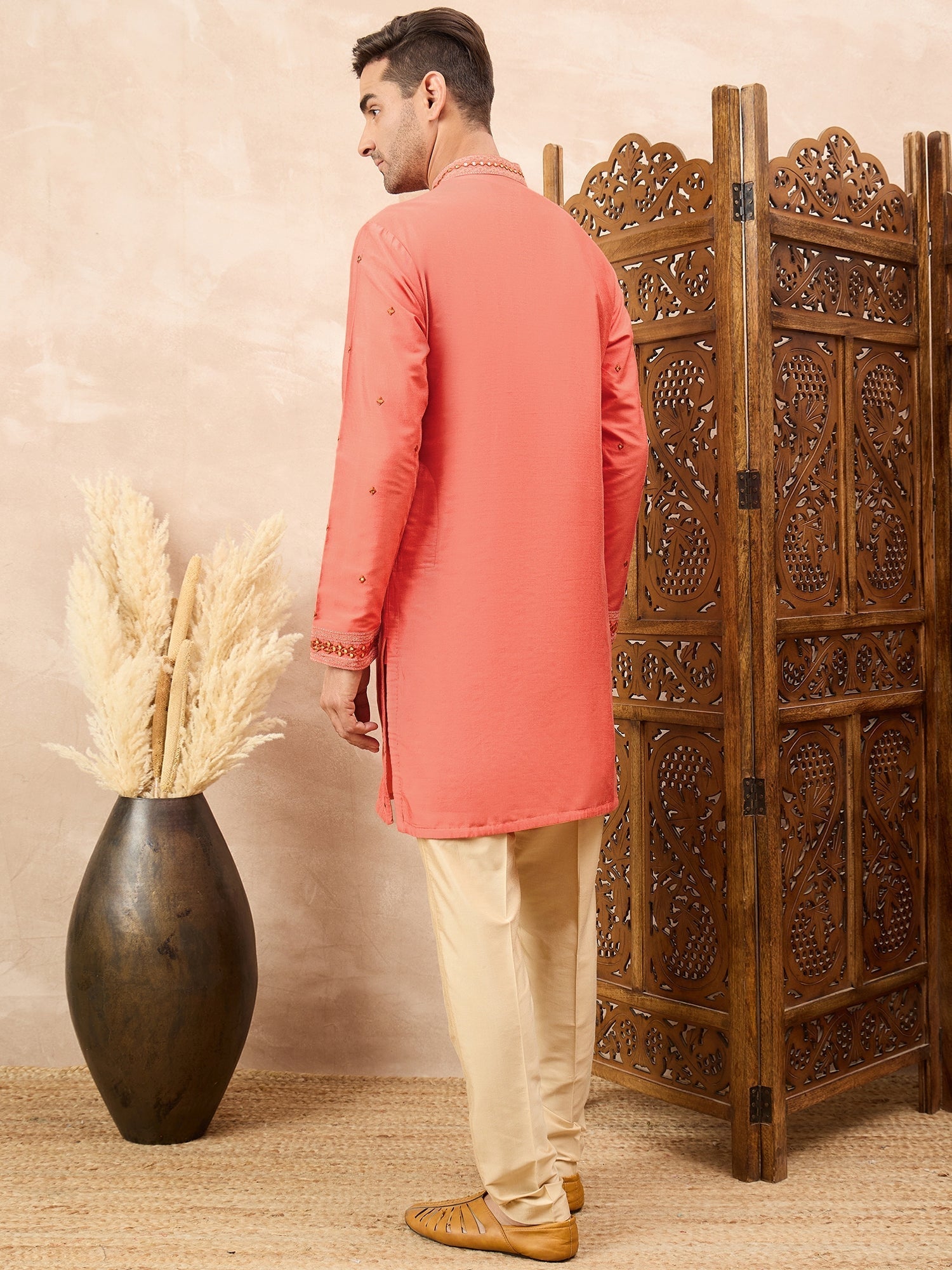 Coral Kurta Pyjama Set with Heavy Embroidery