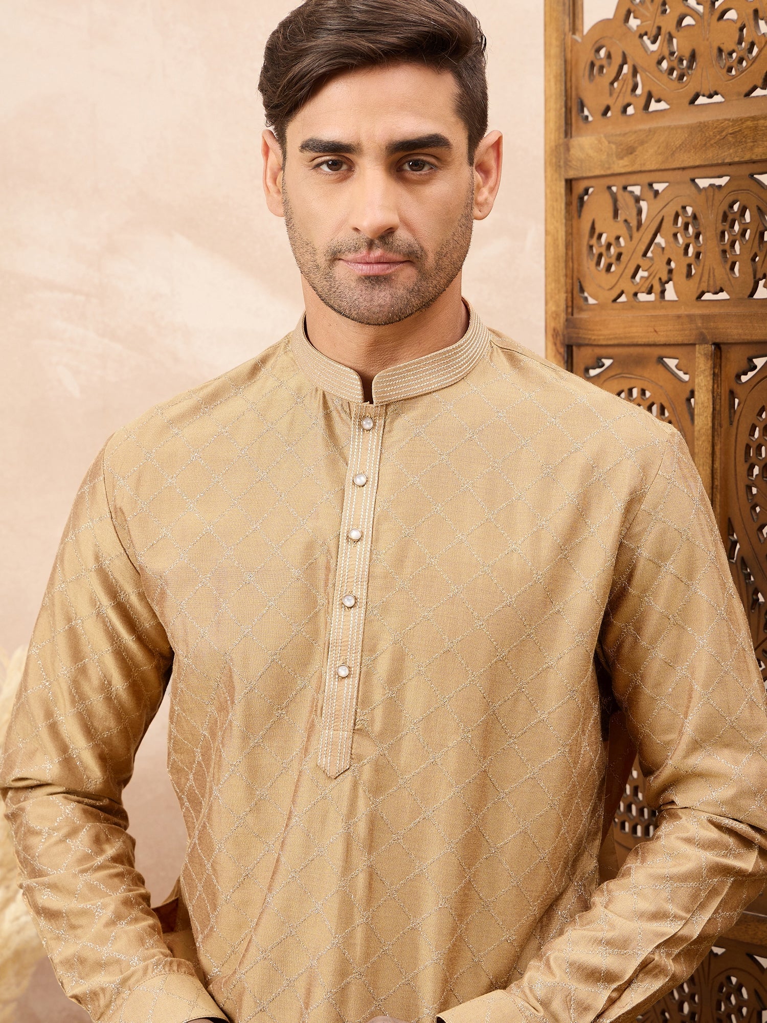 Subtle gold-tone printed kurta with classic cream pyjamaÑminimal, festive, and easy to style.